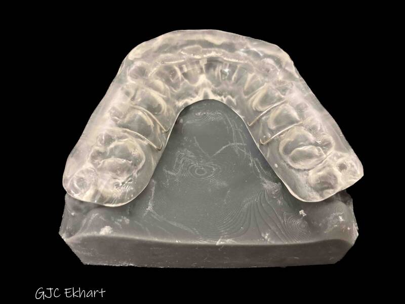 Het kan echter ook gebeuren dat door het klemmen of knarsen het kaakgewricht overbelast raakt. Wanneer dit het geval is, zal er een therapeutische Opbeetplaat worden gemaakt. De opbeetplaat is dikker dan een knarsplaat, waardoor het kaakgewricht in een positie wordt gebracht welke het minst belastend is. Zo hopen we dat het kaakgewricht voldoende wordt ontlast, zodat er weer pijnvrij kan worden gefunctioneerd, of de mond normaal open kan.